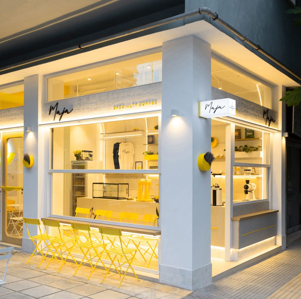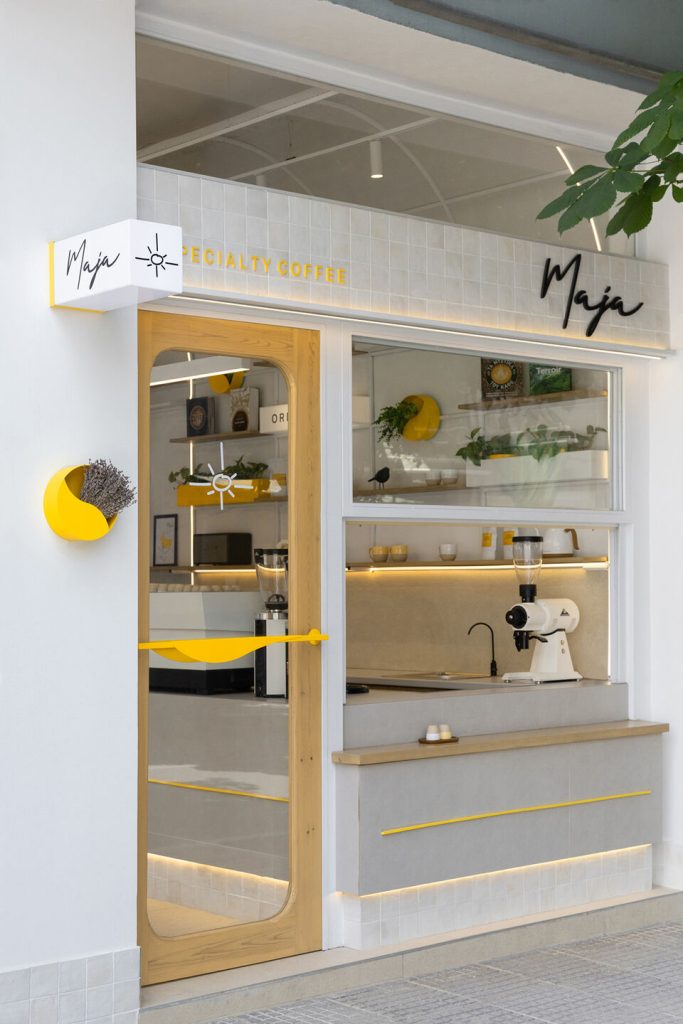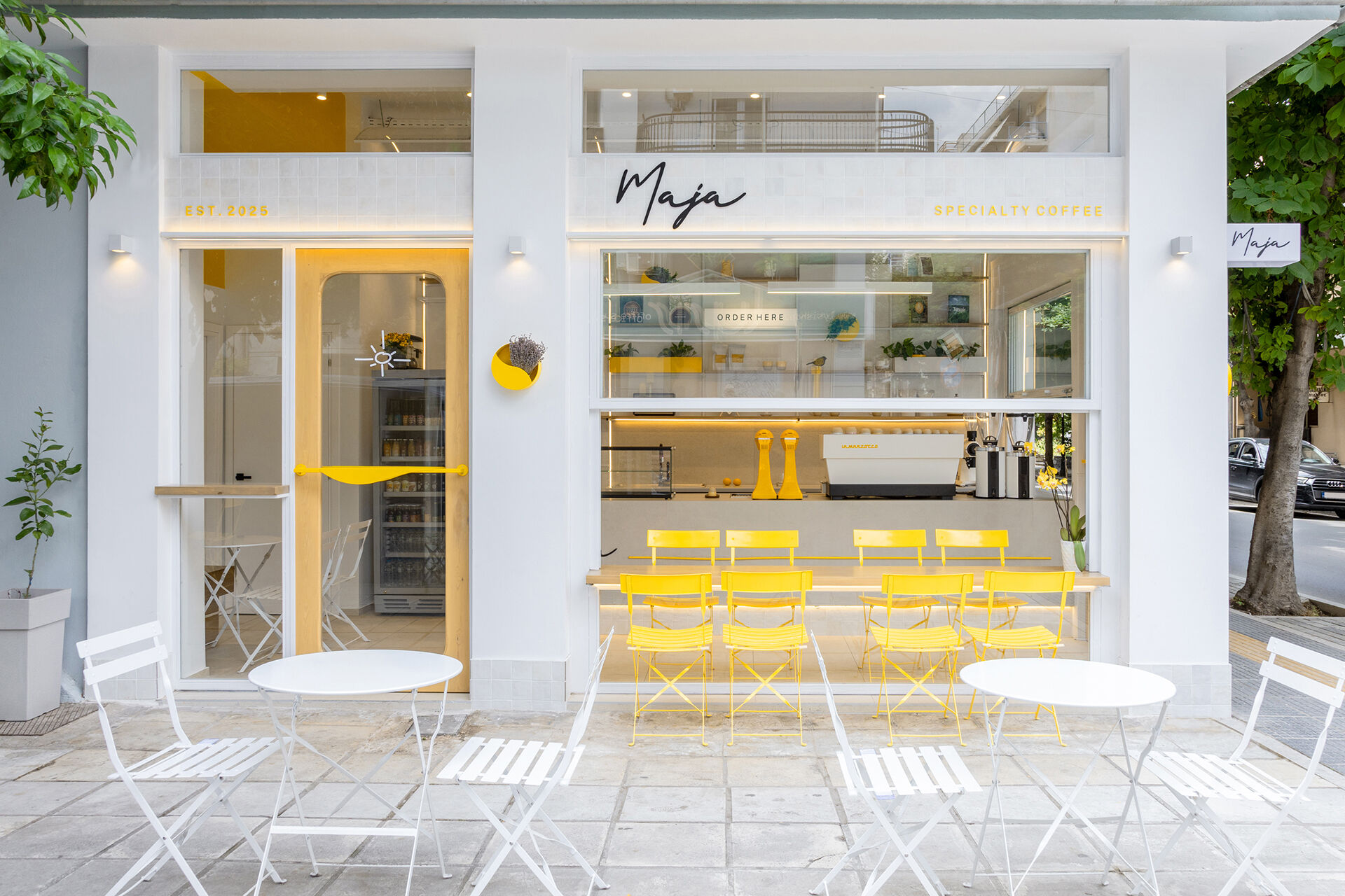Maja Coffee Shop от Lab4 Architects расположено на оживлённом углу Волоса и оформлено как яркая, открытая для улицы «утренняя пауза» в быстром ритме города. Плавные белые металлические рамки визуально сливаются с тротуаром, превращая заказ кофе в часть городского взаимодействия, а деревянные двери из сосны добавляют тепла и уютного приема.