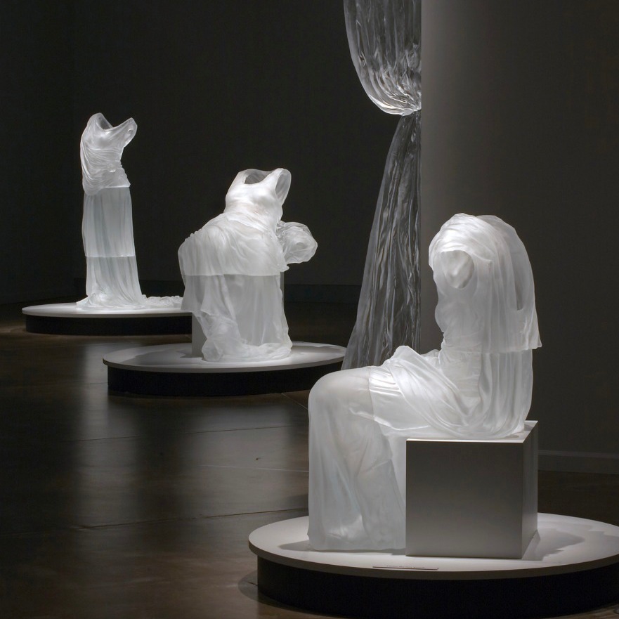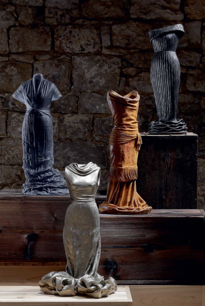 Художница Карен Ламонт представляет работы из фарфора, бронзы, стекла и камня, где ткани и драпировки формируют силуэты, будто обнимающие воздух, намекая на форму тела без его видимого облика. Она сочетает тяжёлые материалы с визуальной лёгкостью, исследуя противопоставления прочного и уязвимого, видимого и отсутствующего.