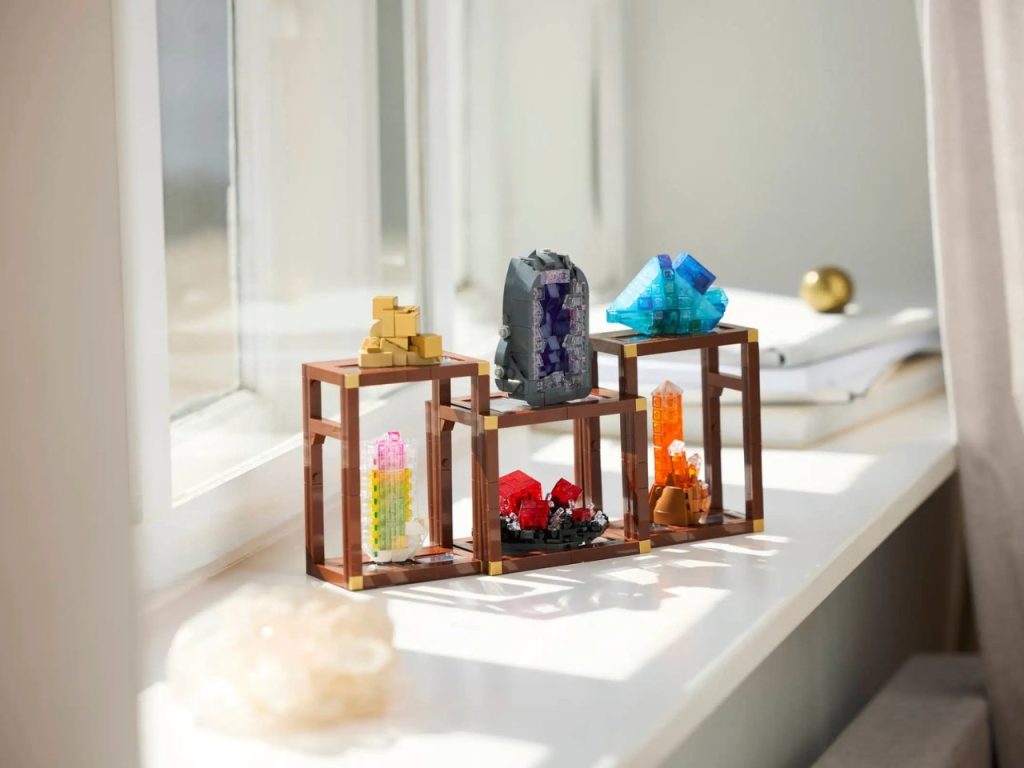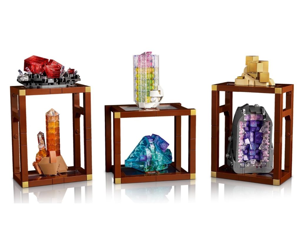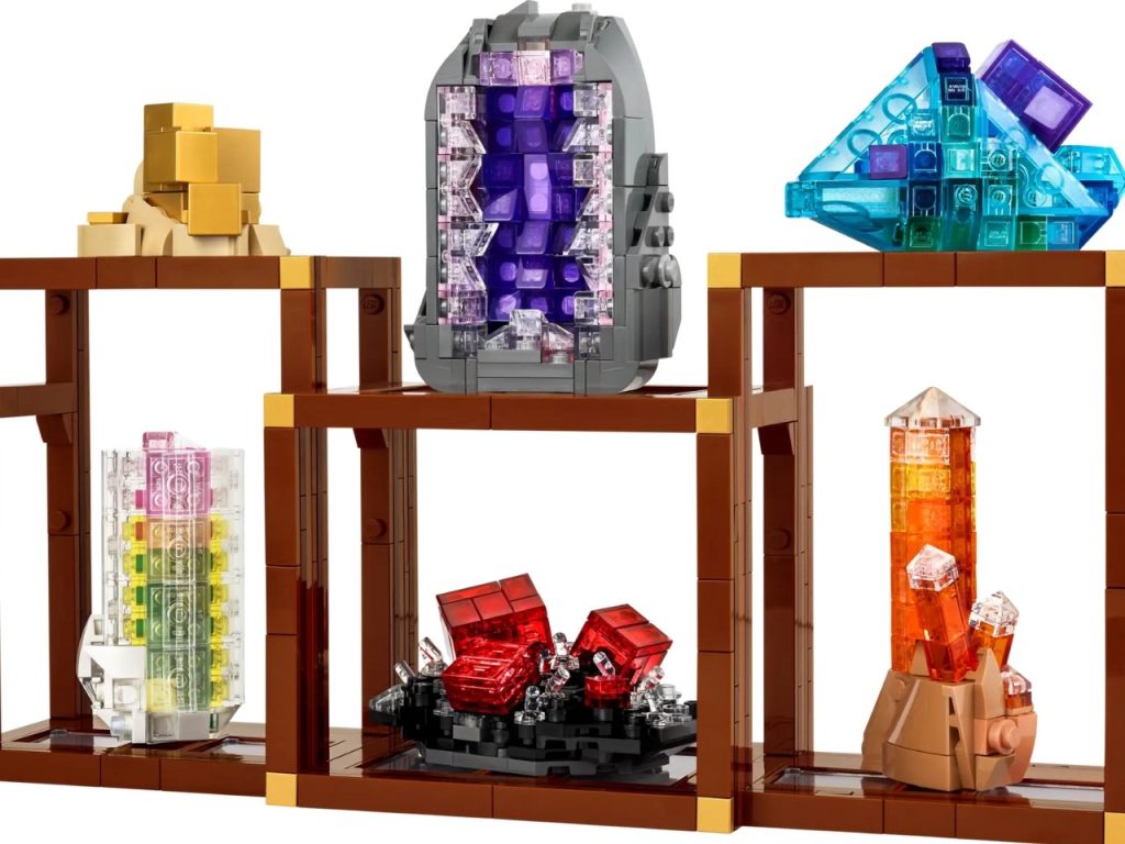 LEGO выпустила коллекцию минералов, первоначально предложенную на платформе LEGO Ideas — теперь это полноценный набор на 880 деталей: шесть минералов — пирит, аметист, родохрозит, флюорит, турмалин и кварц — каждый воспроизведён с деталями, отражающими их текстуру, цвет и светопреломление.