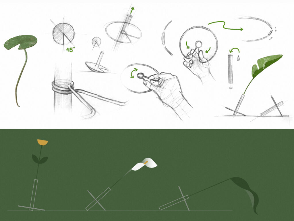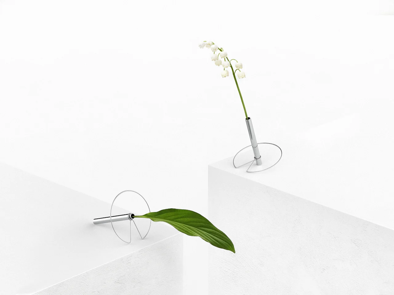 Дизайн вдохновлён тем, как листья лотоса удерживаются на воде: цветы словно парят, а ваза становится не просто сосудом, а активным элементом композиции. Такой подход превращает даже минимальный букет в живую, динамичную инсталляцию.