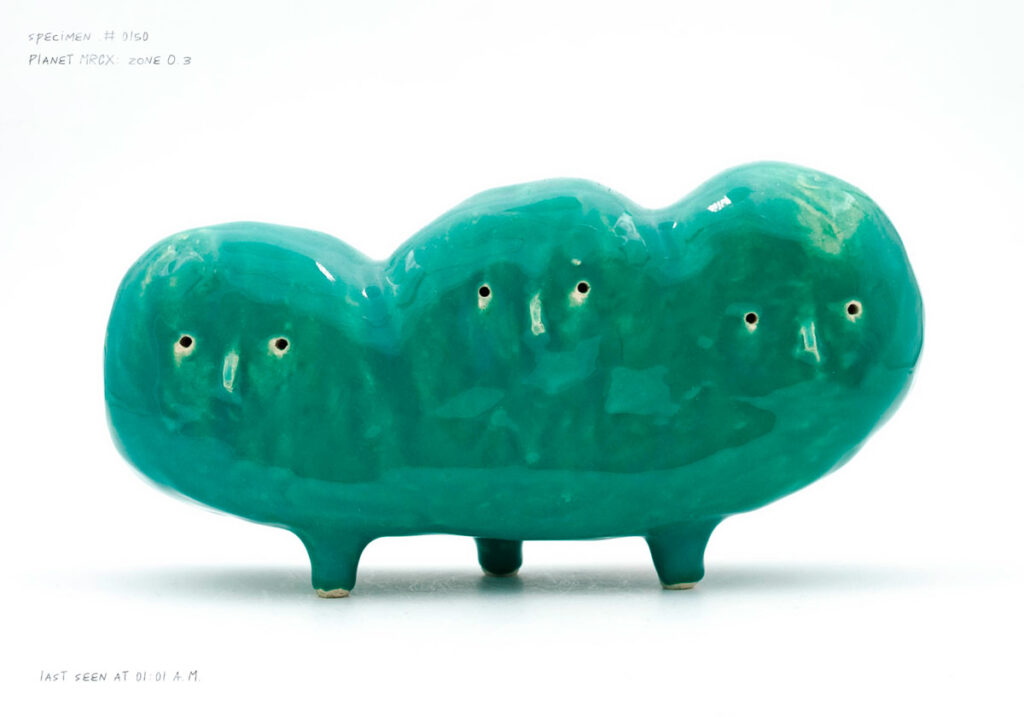 Работы Monsieur Cailloux строятся на сочетании наивной пластики и ручной керамической техники. Его вазы и скульптуры напоминают персонажей или фантазийные тотемы, где неровные контуры и яркая глазурь становятся частью художественного языка.
