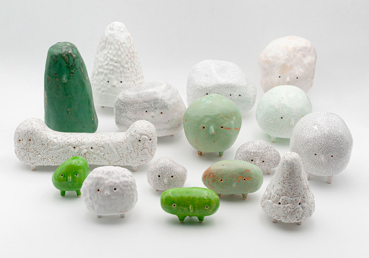 Работы Monsieur Cailloux строятся на сочетании наивной пластики и ручной керамической техники. Его вазы и скульптуры напоминают персонажей или фантазийные тотемы, где неровные контуры и яркая глазурь становятся частью художественного языка.