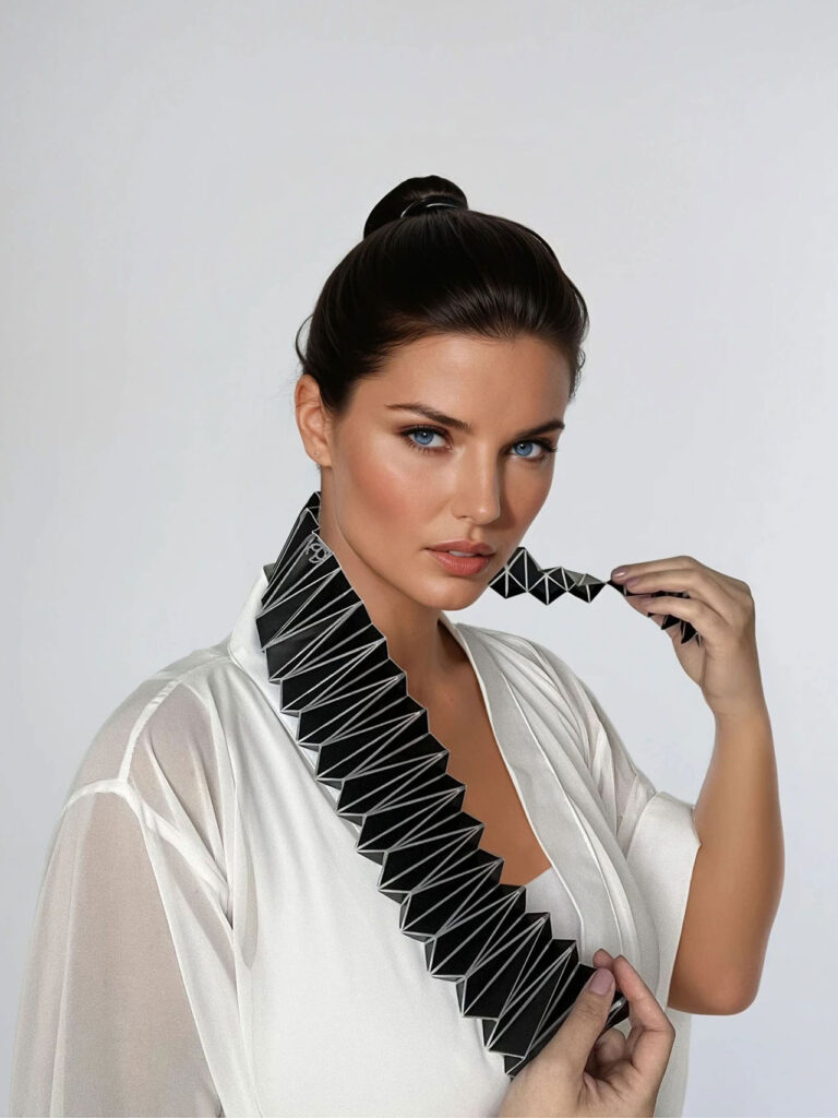 Украшения не фиксируют один образ, а предлагают гибкость и игру с формой. Объекты могут меняться вместе с движением тела и настроением владельца, превращая процесс ношения в интерактивный и персональный художественный жест.