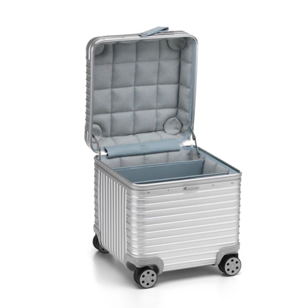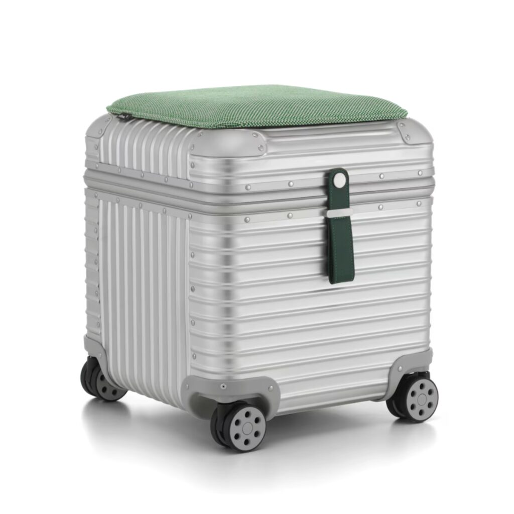 В совместном проекте RIMOWA и Vitra функциональность багажа переосмыслена в формате мебели. Табурет сохраняет характерные рифлёные алюминиевые панели, ассоциирующиеся с люксовыми чемоданами бренда, но получает новую роль в интерьере.