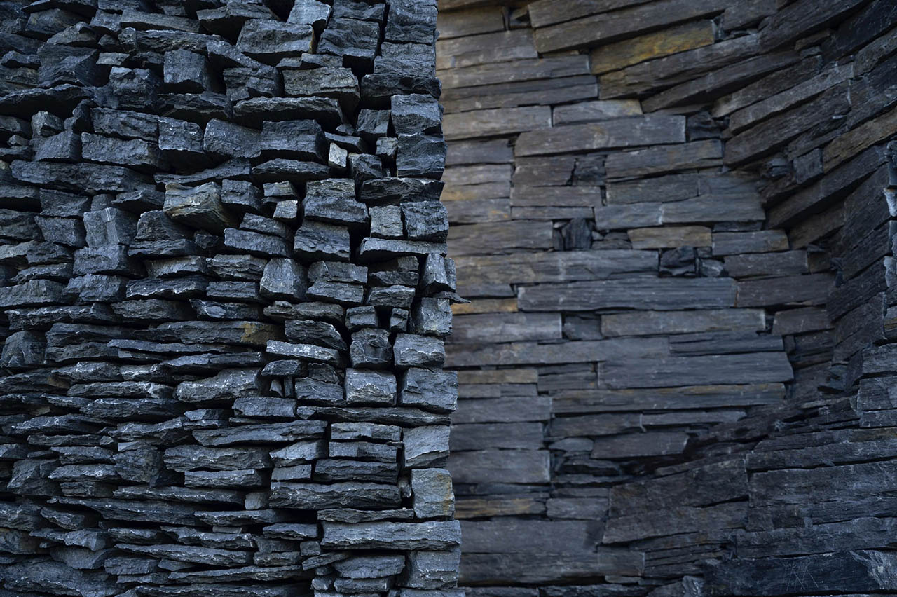 В проекте Ninho Globo студия Atelier YokYok работает с массивными фрагментами сланца, интегрируя в них геометрические элементы и цветовые акценты. Камень остаётся грубым и природным, а добавленные формы выглядят как искусственные «вставки», будто внедрённые в ландшафт.